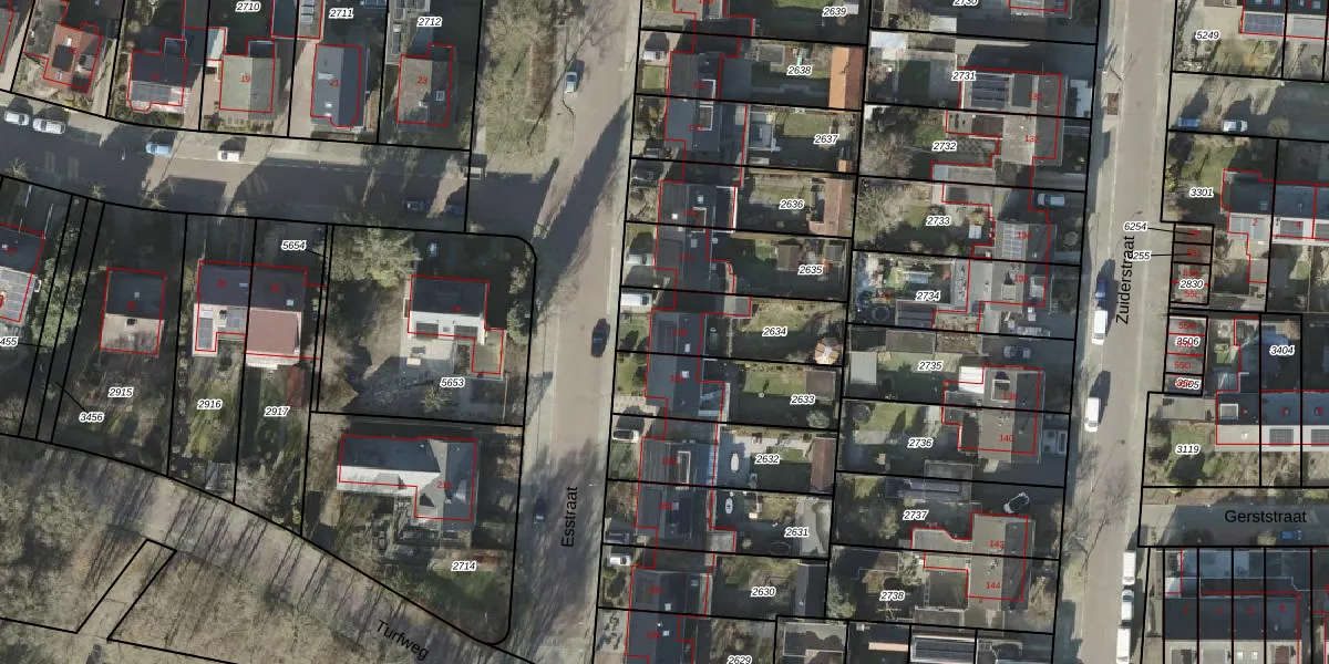 Gebruik de zoekbalk of klik op een perceel voor informatie over de adressen binnen dit perceel.