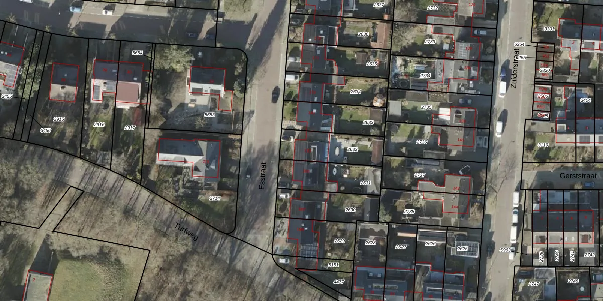 Het perceel waarop Esstraat 183 staat heeft een oppervlakte van 333 m². Dit is een groot perceel. De perceeloppervlakte wordt geregistreerd door het Kadaster. Gedetailleerde informatie over de maten van dit perceel kunt u vinden in het rapport Kadastrale kaart met maatvoering van Esstraat 183.