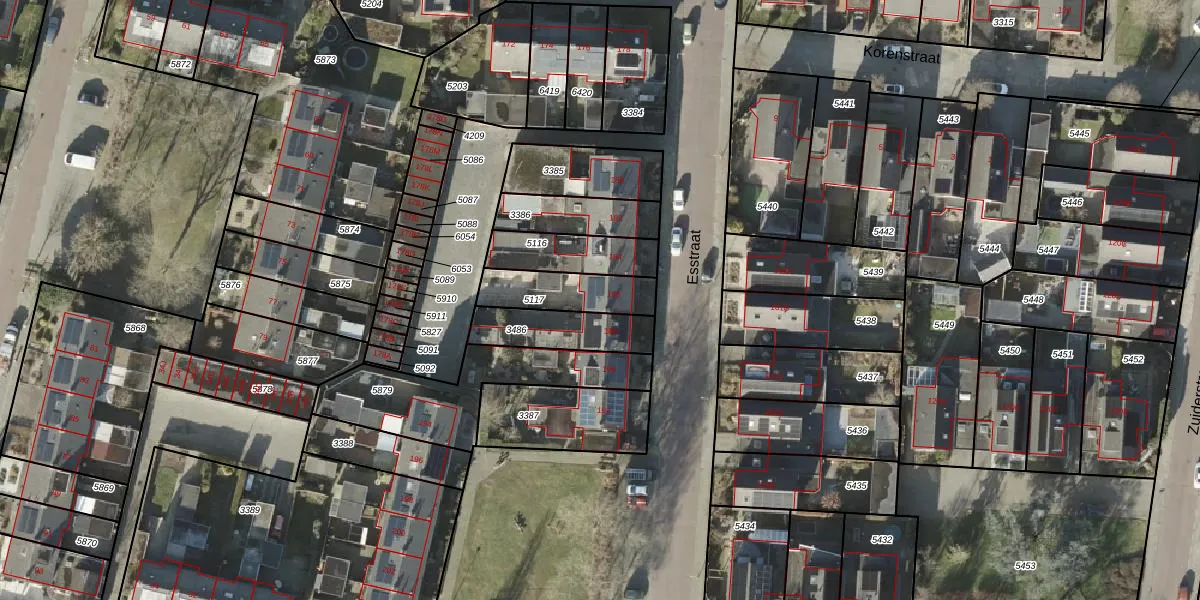Gebruik de zoekbalk of klik op een perceel voor informatie over de adressen binnen dit perceel.