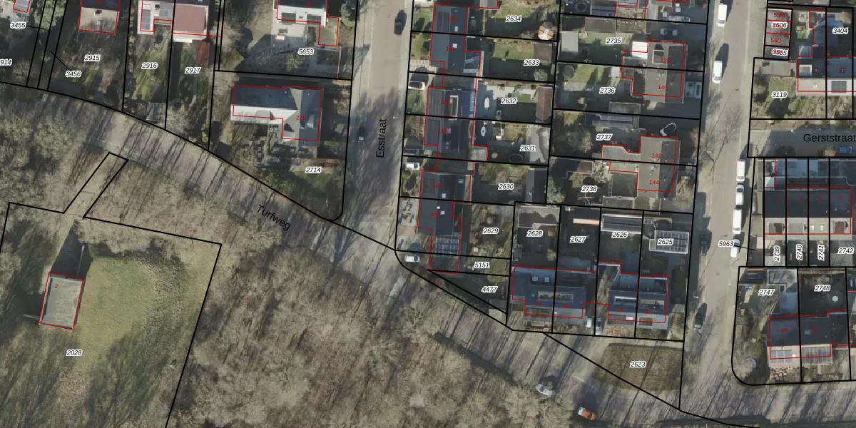Het perceel waarop Esstraat 189 staat heeft een oppervlakte van 343 m². Dit is een groot perceel. De perceeloppervlakte wordt geregistreerd door het Kadaster. Gedetailleerde informatie over de maten van dit perceel kunt u vinden in het rapport Kadastrale kaart met maatvoering van Esstraat 189.