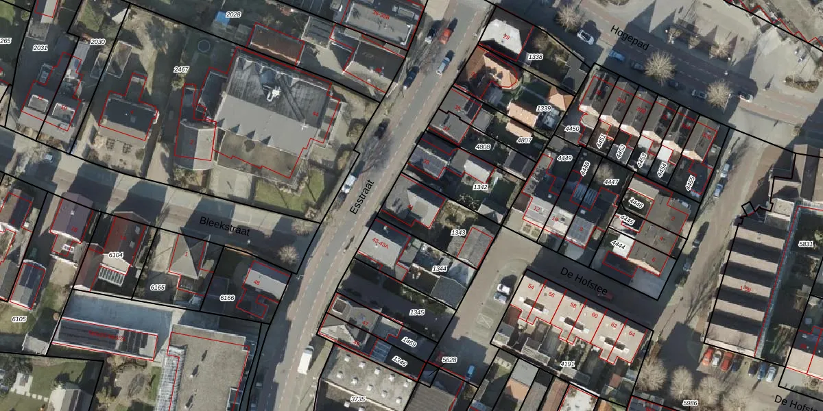 Het perceel waarop Esstraat 41 staat heeft een oppervlakte van 340 m². Dit is een groot perceel. De perceeloppervlakte wordt geregistreerd door het Kadaster. Gedetailleerde informatie over de maten van dit perceel kunt u vinden in het rapport Kadastrale kaart met maatvoering van Esstraat 41.