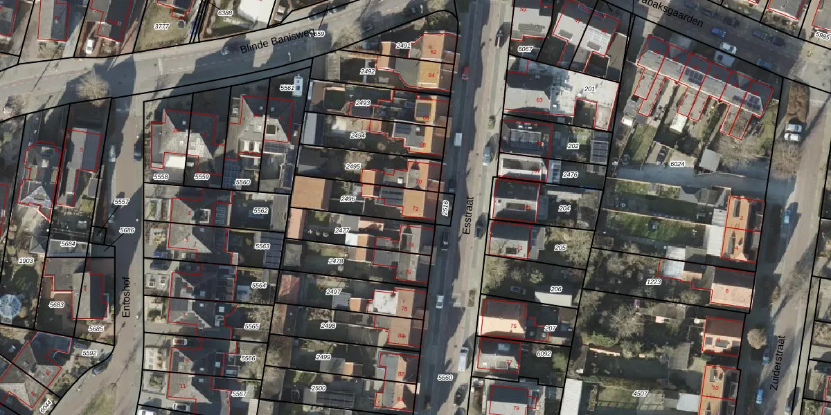 Het perceel waarop Esstraat 72 staat heeft een oppervlakte van 272 m². Dit is een middelgroot perceel. De perceeloppervlakte wordt geregistreerd door het Kadaster. Gedetailleerde informatie over de maten van dit perceel kunt u vinden in het rapport Kadastrale kaart met maatvoering van Esstraat 72.