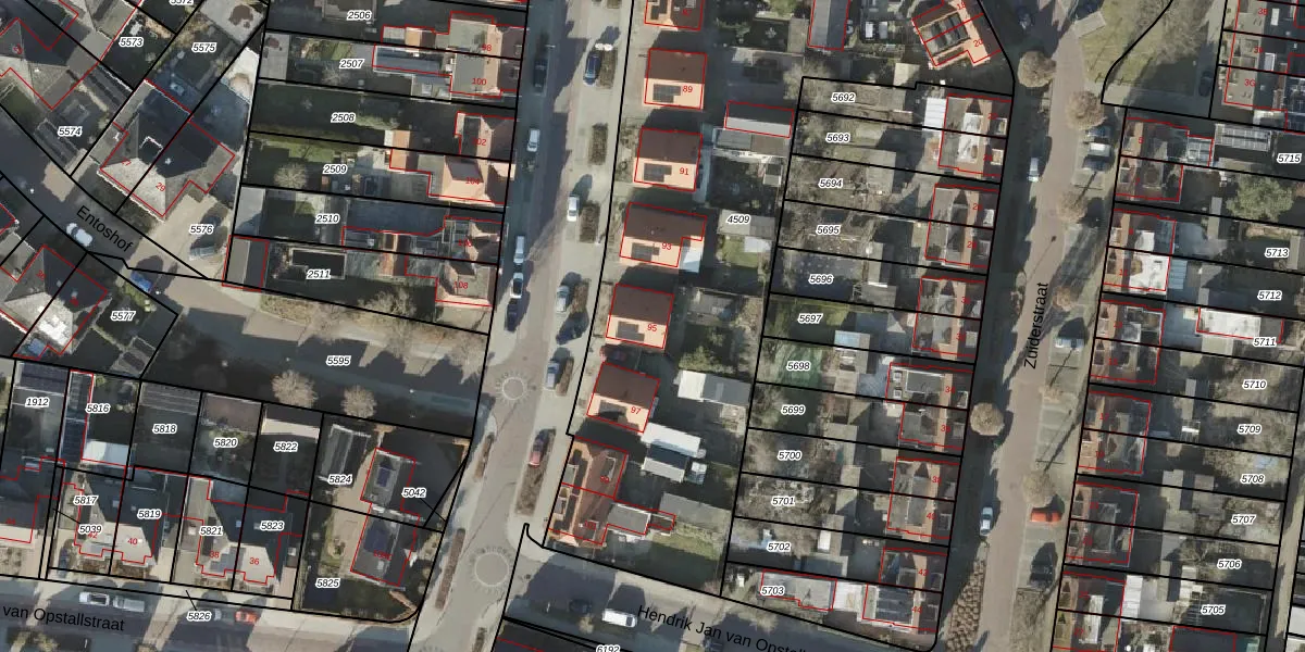 Het perceel waarop Esstraat 95 staat heeft een oppervlakte van 3276 m². Dit is een zeer groot perceel. De perceeloppervlakte wordt geregistreerd door het Kadaster. Gedetailleerde informatie over de maten van dit perceel kunt u vinden in het rapport Kadastrale kaart met maatvoering van Esstraat 95.