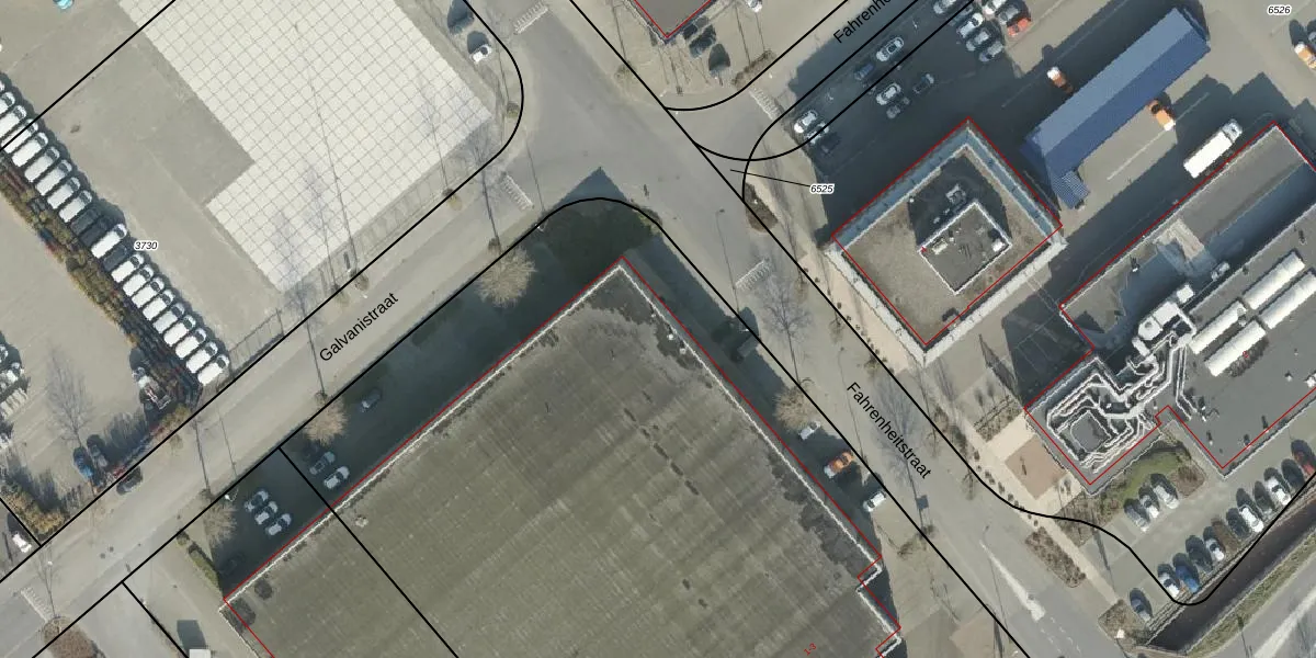 Het perceel waarop Fahrenheitstraat 1-A staat heeft een oppervlakte van 7435 m². Dit is een zeer groot perceel. De perceeloppervlakte wordt geregistreerd door het Kadaster. Gedetailleerde informatie over de maten van dit perceel kunt u vinden in het rapport Kadastrale kaart met maatvoering van Fahrenheitstraat 1-A.