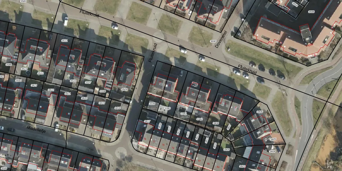 Gebruik de zoekbalk of klik op een perceel voor informatie over de adressen binnen dit perceel.