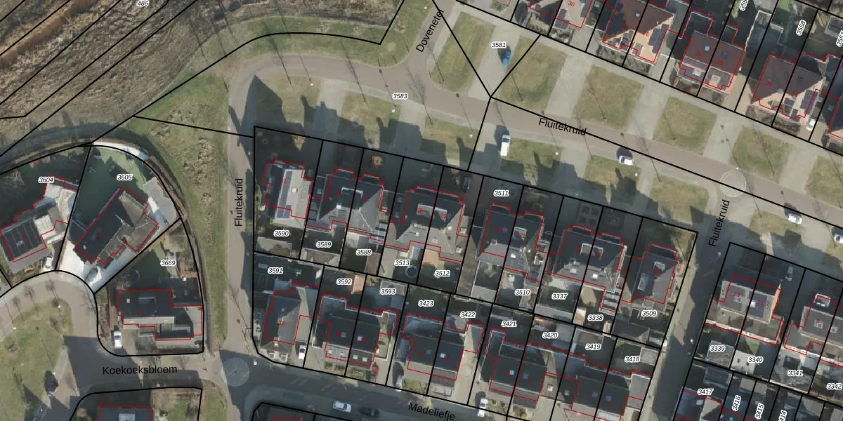 Fluitekruid 25 is gelegen op kadastraal perceel RSN01E3513. Deze kadastrale aanduiding is uniek en wordt gebruikt door het Kadaster om eigendomsrechten en andere zakelijke rechten vast te leggen. Het perceel maakt onderdeel uit van de kadastrale gemeente Rijssen.