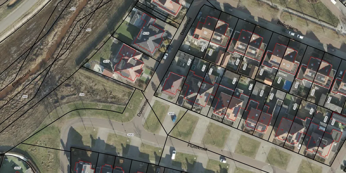 Gebruik de zoekbalk of klik op een perceel voor informatie over de adressen binnen dit perceel.