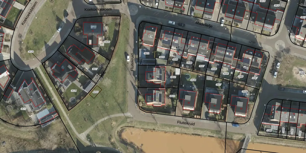 Het perceel waarop Fluitekruid 35 staat heeft een oppervlakte van 389 m². Dit is een groot perceel. De perceeloppervlakte wordt geregistreerd door het Kadaster. Gedetailleerde informatie over de maten van dit perceel kunt u vinden in het rapport Kadastrale kaart met maatvoering van Fluitekruid 35.