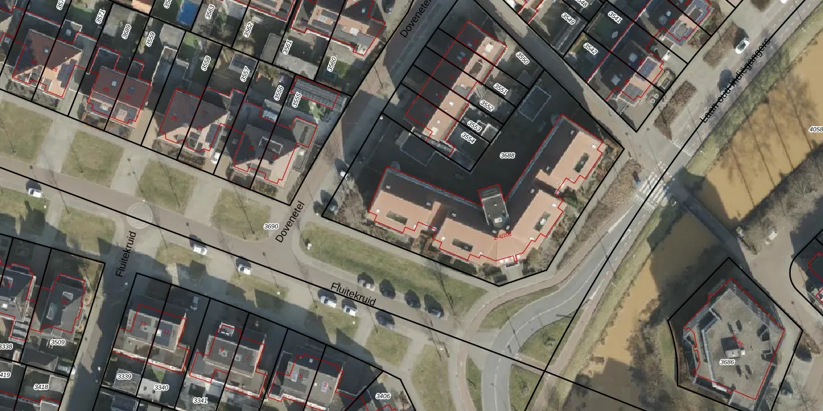Het perceel waarop Fluitekruid 4-104 staat heeft een oppervlakte van 2000 m². Dit is een zeer groot perceel. De perceeloppervlakte wordt geregistreerd door het Kadaster. Gedetailleerde informatie over de maten van dit perceel kunt u vinden in het rapport Kadastrale kaart met maatvoering van Fluitekruid 4-104.