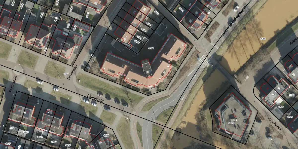 Het perceel waarop Fluitekruid 4 staat heeft een oppervlakte van 2000 m². Dit is een zeer groot perceel. De perceeloppervlakte wordt geregistreerd door het Kadaster. Gedetailleerde informatie over de maten van dit perceel kunt u vinden in het rapport Kadastrale kaart met maatvoering van Fluitekruid 4.