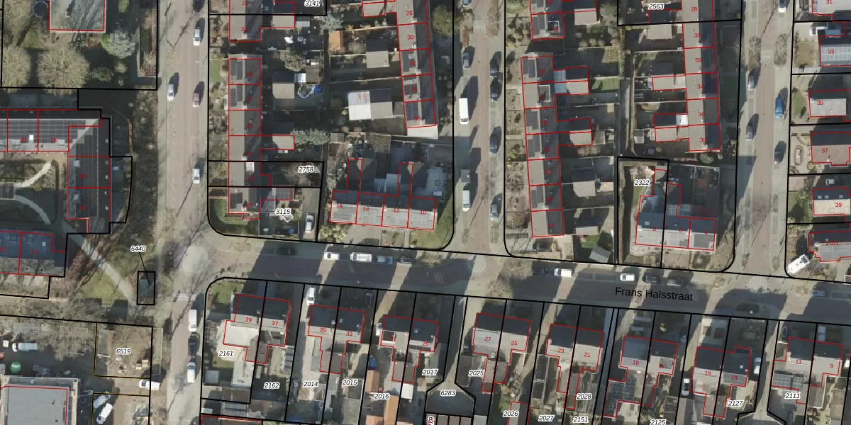 Het perceel waarop Frans Halsstraat 10 staat heeft een oppervlakte van 6427 m². Dit is een zeer groot perceel. De perceeloppervlakte wordt geregistreerd door het Kadaster. Gedetailleerde informatie over de maten van dit perceel kunt u vinden in het rapport Kadastrale kaart met maatvoering van Frans Halsstraat 10.