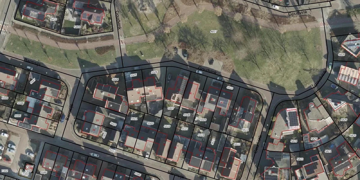 Het perceel waarop Goudvink 36 staat heeft een oppervlakte van 300 m². Dit is een groot perceel. De perceeloppervlakte wordt geregistreerd door het Kadaster. Gedetailleerde informatie over de maten van dit perceel kunt u vinden in het rapport Kadastrale kaart met maatvoering van Goudvink 36.