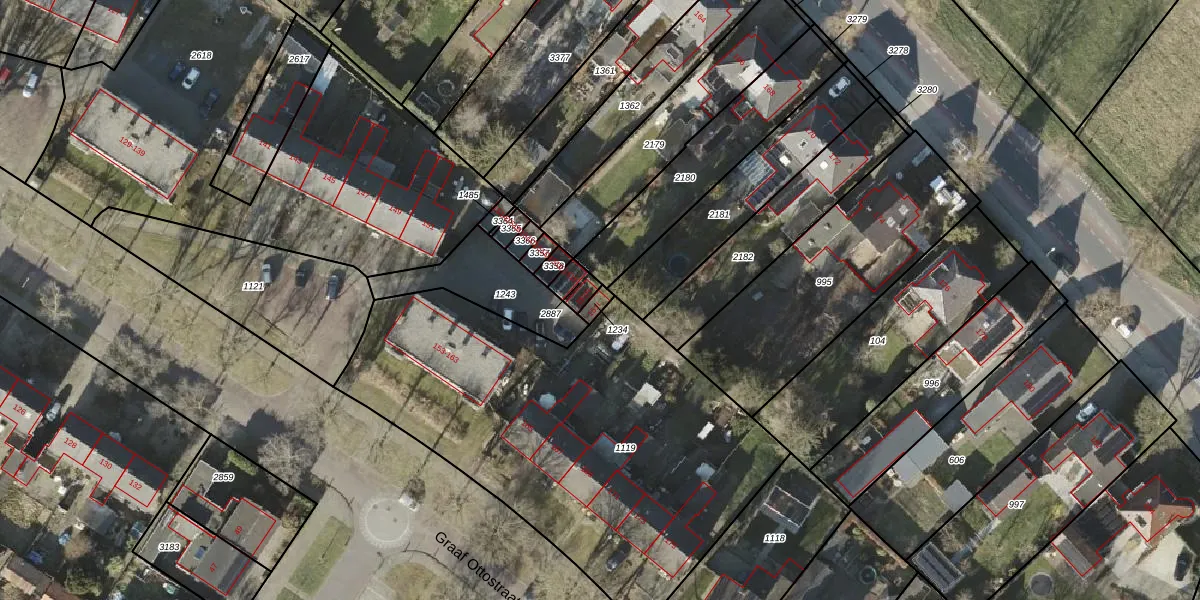 Het perceel waarop Graaf Ottostraat 151-I staat heeft een oppervlakte van 18 m². Dit is een klein perceel. De perceeloppervlakte wordt geregistreerd door het Kadaster. Gedetailleerde informatie over de maten van dit perceel kunt u vinden in het rapport Kadastrale kaart met maatvoering van Graaf Ottostraat 151-I.