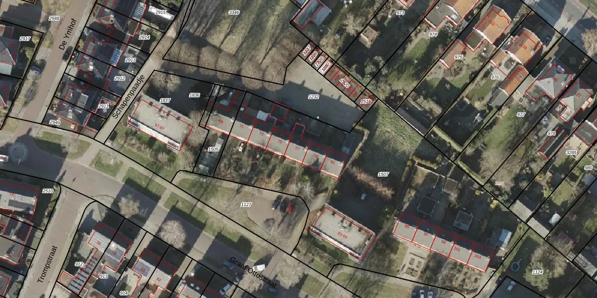 Het perceel waarop Graaf Ottostraat 77 staat heeft een oppervlakte van 3940 m². Dit is een zeer groot perceel. De perceeloppervlakte wordt geregistreerd door het Kadaster. Gedetailleerde informatie over de maten van dit perceel kunt u vinden in het rapport Kadastrale kaart met maatvoering van Graaf Ottostraat 77.