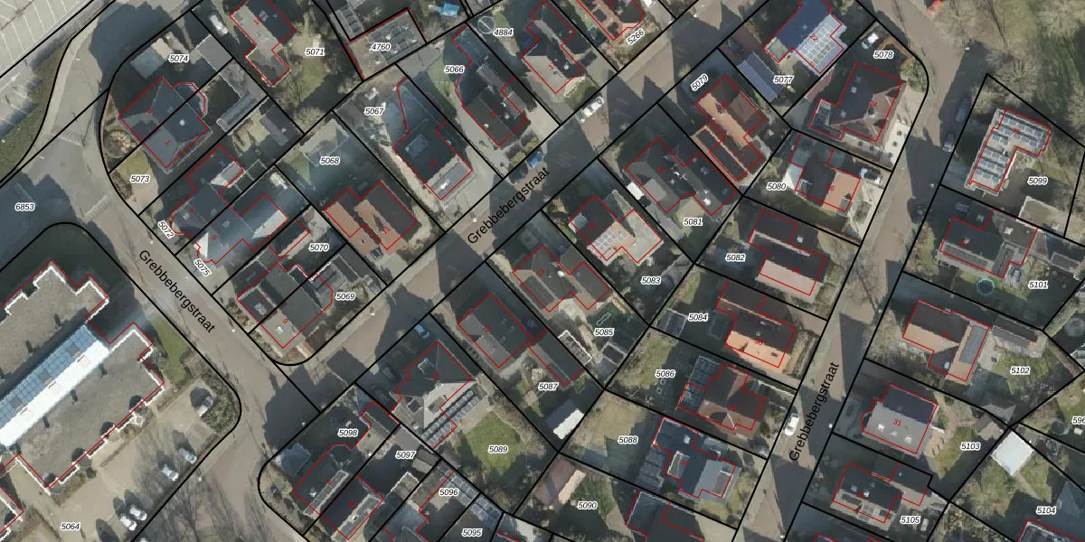Het perceel waarop Grebbebergstraat 14 staat heeft een oppervlakte van 434 m². Dit is een groot perceel. De perceeloppervlakte wordt geregistreerd door het Kadaster. Gedetailleerde informatie over de maten van dit perceel kunt u vinden in het rapport Kadastrale kaart met maatvoering van Grebbebergstraat 14.