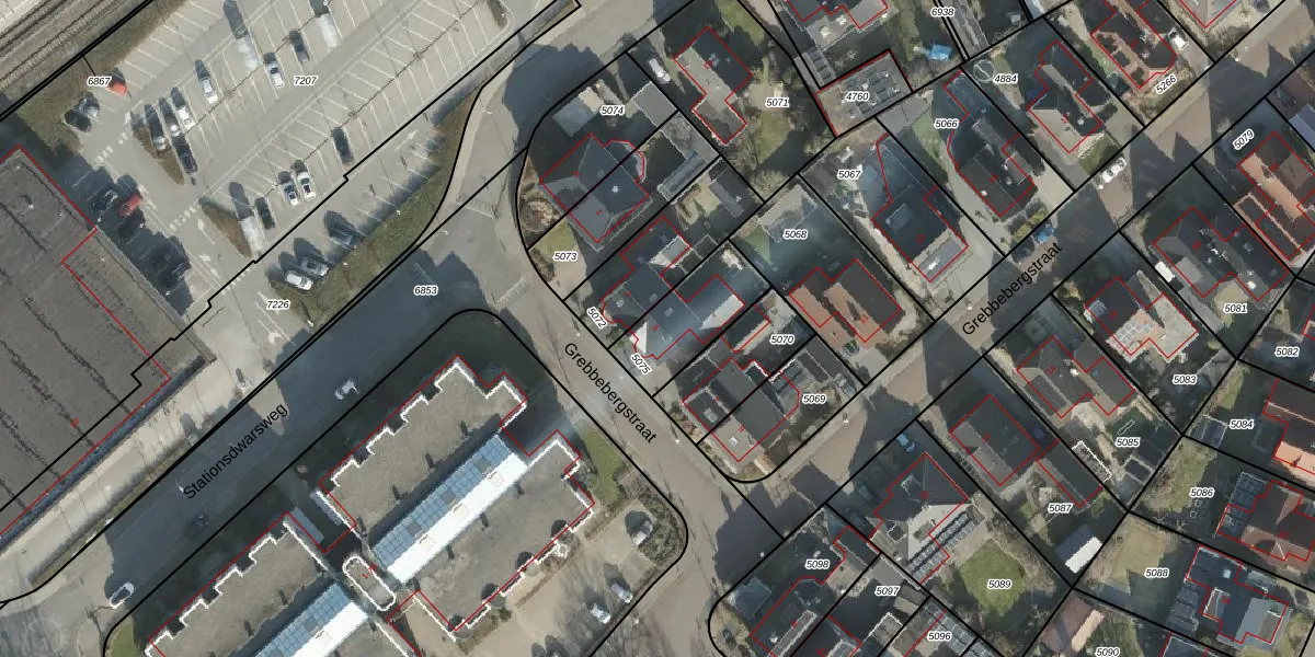 Grebbebergstraat 5 is gelegen op kadastraal perceel RSN01F5075. Deze kadastrale aanduiding is uniek en wordt gebruikt door het Kadaster om eigendomsrechten en andere zakelijke rechten vast te leggen. Het perceel maakt onderdeel uit van de kadastrale gemeente Rijssen.