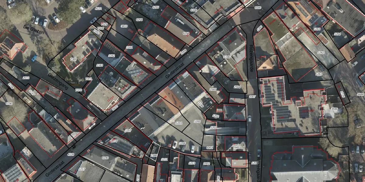 Grotestraat 14-105 is gelegen op kadastraal perceel RSN01F1200. Deze kadastrale aanduiding is uniek en wordt gebruikt door het Kadaster om eigendomsrechten en andere zakelijke rechten vast te leggen. Het perceel maakt onderdeel uit van de kadastrale gemeente Rijssen.