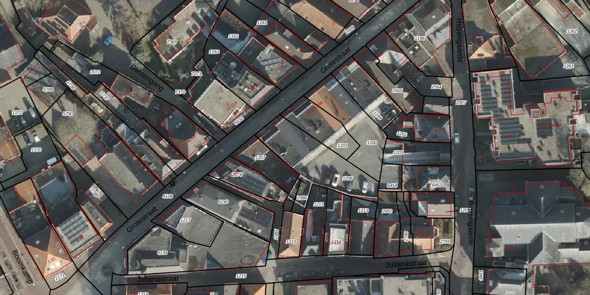 Het perceel waarop Grotestraat 14-201 staat heeft een oppervlakte van 542 m². Dit is een groot perceel. De perceeloppervlakte wordt geregistreerd door het Kadaster. Gedetailleerde informatie over de maten van dit perceel kunt u vinden in het rapport Kadastrale kaart met maatvoering van Grotestraat 14-201.