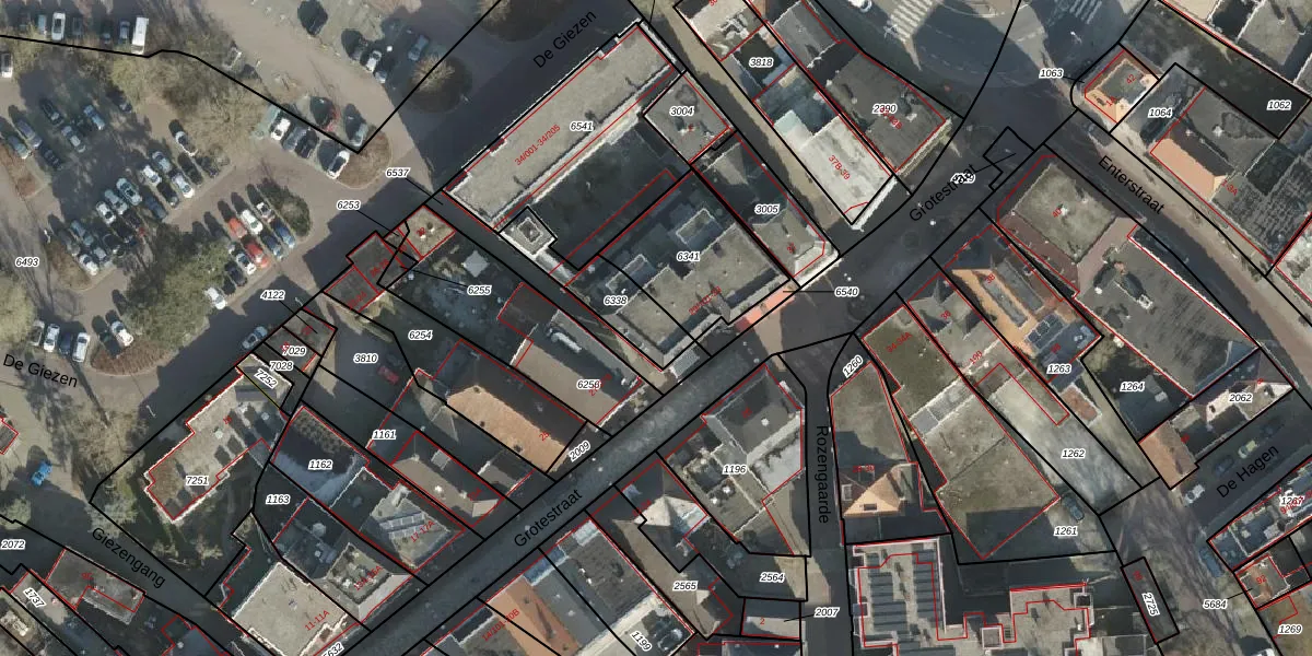Het perceel waarop Grotestraat 29-101 staat heeft een oppervlakte van 204 m². Dit is een middelgroot perceel. De perceeloppervlakte wordt geregistreerd door het Kadaster. Gedetailleerde informatie over de maten van dit perceel kunt u vinden in het rapport Kadastrale kaart met maatvoering van Grotestraat 29-101.