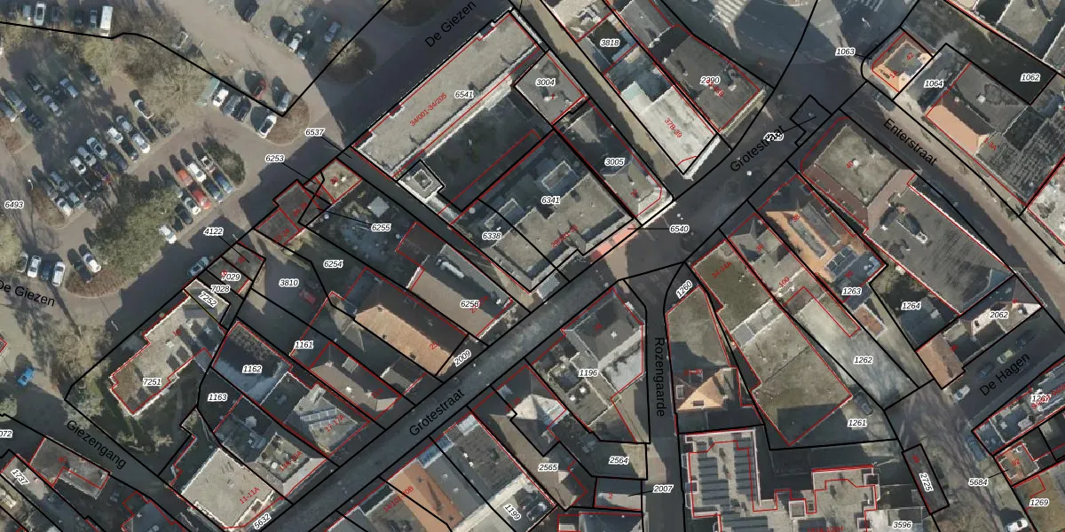Grotestraat 31 is gelegen op kadastraal perceel RSN01F6338. Deze kadastrale aanduiding is uniek en wordt gebruikt door het Kadaster om eigendomsrechten en andere zakelijke rechten vast te leggen. Het perceel maakt onderdeel uit van de kadastrale gemeente Rijssen.