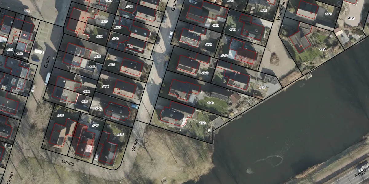 Het perceel waarop Grutto 20 staat heeft een oppervlakte van 727 m². Dit is een groot perceel. De perceeloppervlakte wordt geregistreerd door het Kadaster. Gedetailleerde informatie over de maten van dit perceel kunt u vinden in het rapport Kadastrale kaart met maatvoering van Grutto 20.