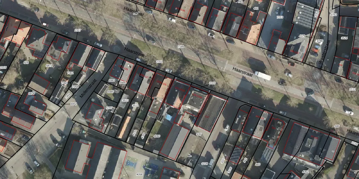 Haarstraat 121 is gelegen op kadastraal perceel RSN01F4060. Deze kadastrale aanduiding is uniek en wordt gebruikt door het Kadaster om eigendomsrechten en andere zakelijke rechten vast te leggen. Het perceel maakt onderdeel uit van de kadastrale gemeente Rijssen.
