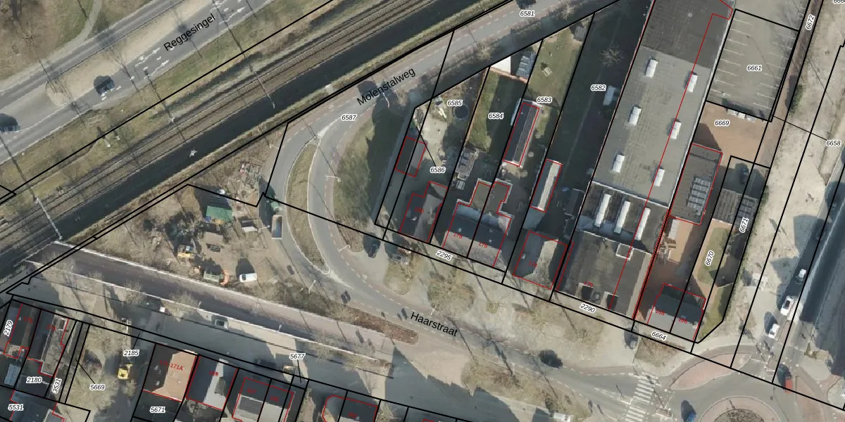 Haarstraat 180 is gelegen op kadastraal perceel RSN01F6585. Deze kadastrale aanduiding is uniek en wordt gebruikt door het Kadaster om eigendomsrechten en andere zakelijke rechten vast te leggen. Het perceel maakt onderdeel uit van de kadastrale gemeente Rijssen.