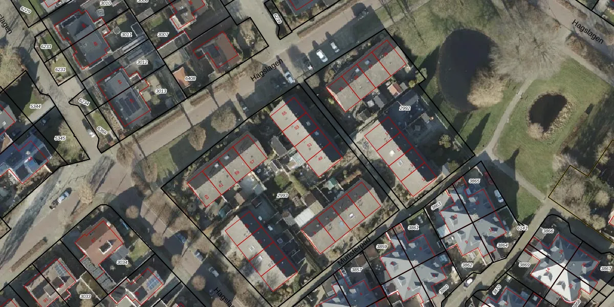 Het perceel waarop Hagslagen 51 staat heeft een oppervlakte van 2932 m². Dit is een zeer groot perceel. De perceeloppervlakte wordt geregistreerd door het Kadaster. Gedetailleerde informatie over de maten van dit perceel kunt u vinden in het rapport Kadastrale kaart met maatvoering van Hagslagen 51.