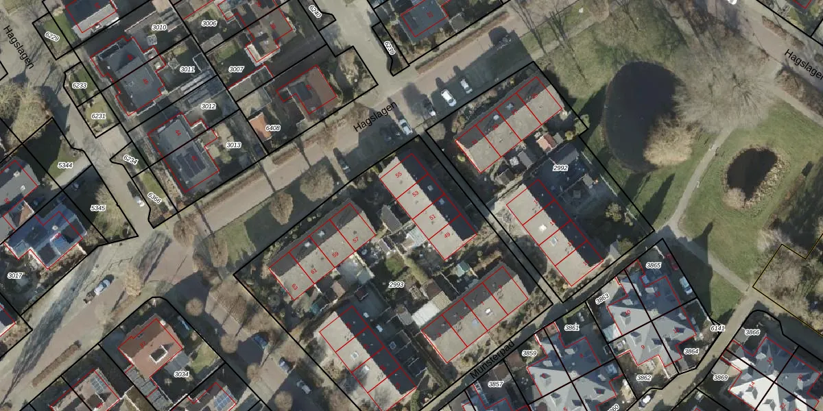 Het perceel waarop Hagslagen 53 staat heeft een oppervlakte van 2932 m². Dit is een zeer groot perceel. De perceeloppervlakte wordt geregistreerd door het Kadaster. Gedetailleerde informatie over de maten van dit perceel kunt u vinden in het rapport Kadastrale kaart met maatvoering van Hagslagen 53.