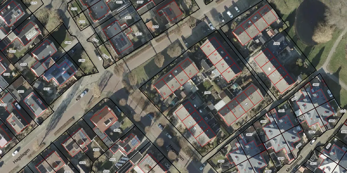 Het perceel waarop Hagslagen 61 staat heeft een oppervlakte van 2932 m². Dit is een zeer groot perceel. De perceeloppervlakte wordt geregistreerd door het Kadaster. Gedetailleerde informatie over de maten van dit perceel kunt u vinden in het rapport Kadastrale kaart met maatvoering van Hagslagen 61.