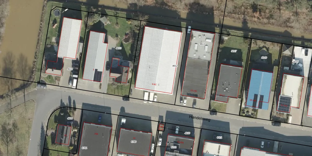 Handelsweg 9 is gelegen op kadastraal perceel RSN01F4612. Deze kadastrale aanduiding is uniek en wordt gebruikt door het Kadaster om eigendomsrechten en andere zakelijke rechten vast te leggen. Het perceel maakt onderdeel uit van de kadastrale gemeente Rijssen.