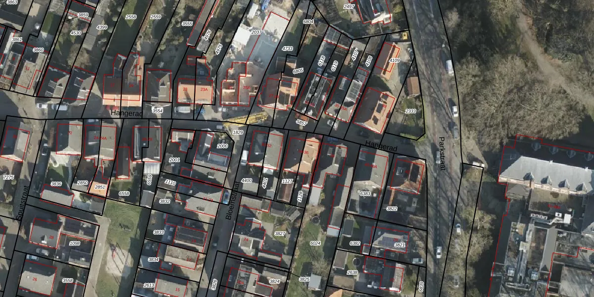 Gebruik de zoekbalk of klik op een perceel voor informatie over de adressen binnen dit perceel.