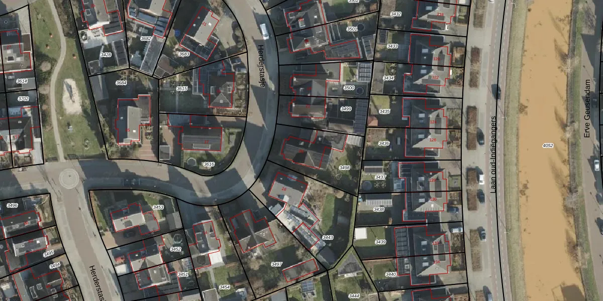 Gebruik de zoekbalk of klik op een perceel voor informatie over de adressen binnen dit perceel.