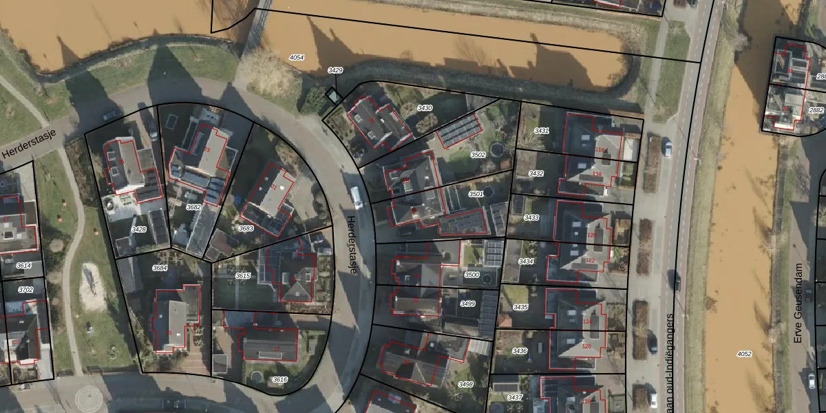 Het perceel waarop Herderstasje 26 staat heeft een oppervlakte van 429 m². Dit is een groot perceel. De perceeloppervlakte wordt geregistreerd door het Kadaster. Gedetailleerde informatie over de maten van dit perceel kunt u vinden in het rapport Kadastrale kaart met maatvoering van Herderstasje 26.