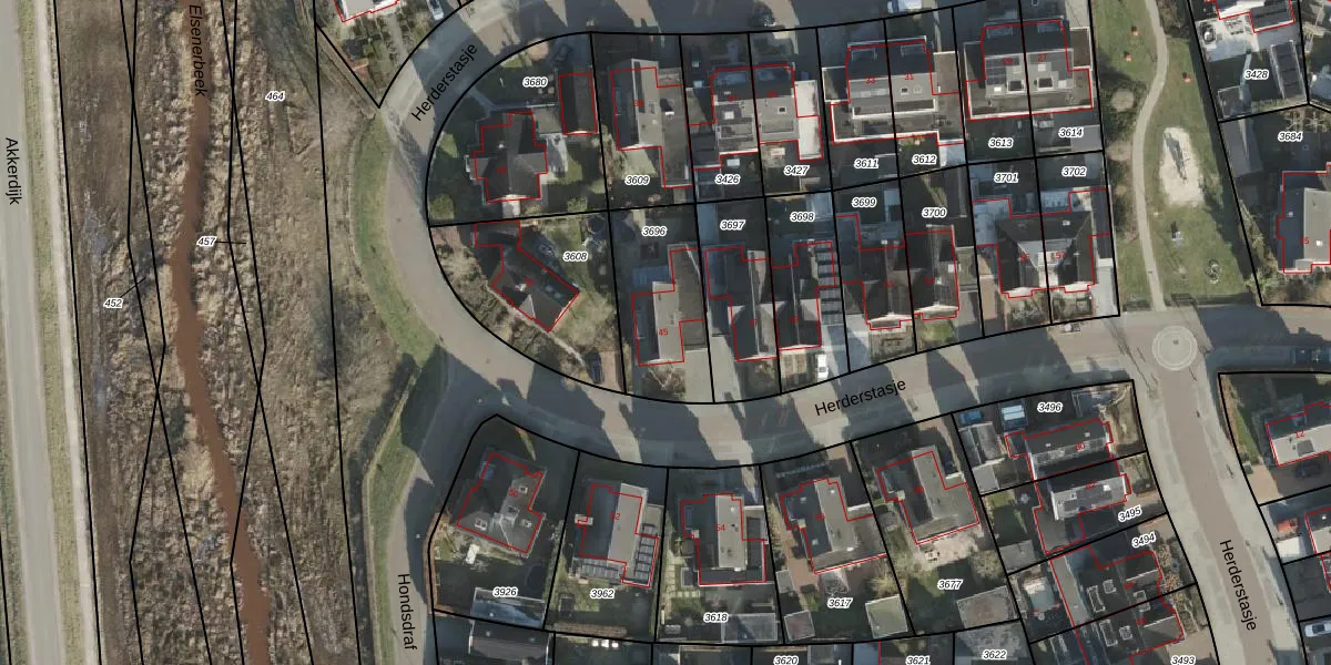 Het perceel waarop Herderstasje 45 staat heeft een oppervlakte van 382 m². Dit is een groot perceel. De perceeloppervlakte wordt geregistreerd door het Kadaster. Gedetailleerde informatie over de maten van dit perceel kunt u vinden in het rapport Kadastrale kaart met maatvoering van Herderstasje 45.