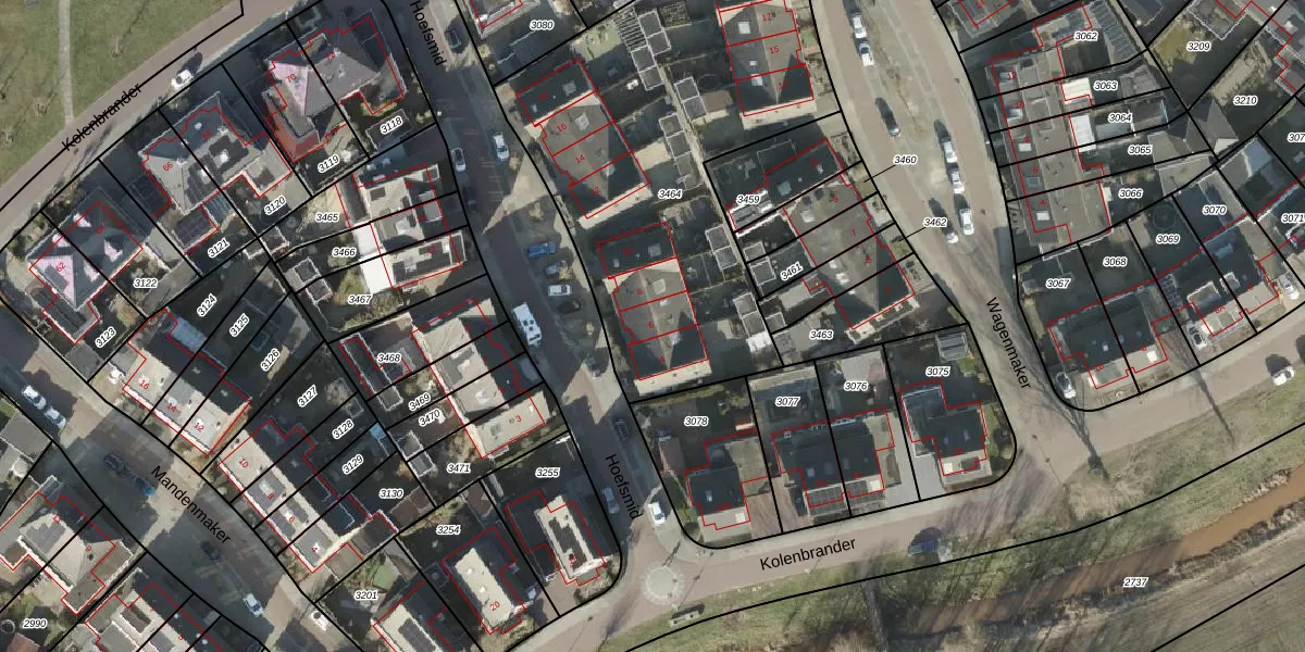 Het perceel waarop Hoefsmid 6 staat heeft een oppervlakte van 2093 m². Dit is een zeer groot perceel. De perceeloppervlakte wordt geregistreerd door het Kadaster. Gedetailleerde informatie over de maten van dit perceel kunt u vinden in het rapport Kadastrale kaart met maatvoering van Hoefsmid 6.