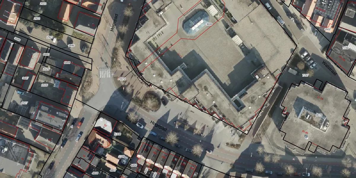 Het perceel waarop Hogepad 21 staat heeft een oppervlakte van 6525 m². Dit is een zeer groot perceel. De perceeloppervlakte wordt geregistreerd door het Kadaster. Gedetailleerde informatie over de maten van dit perceel kunt u vinden in het rapport Kadastrale kaart met maatvoering van Hogepad 21.