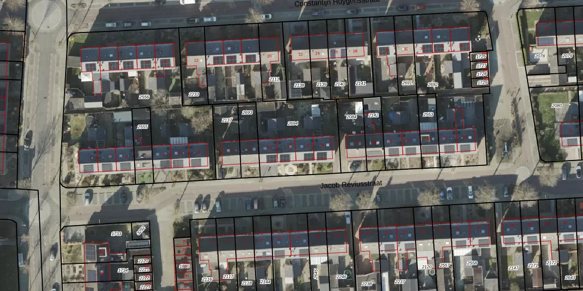 Het perceel waarop Jacob Reviusstraat 21 staat heeft een oppervlakte van 1225 m². Dit is een zeer groot perceel. De perceeloppervlakte wordt geregistreerd door het Kadaster. Gedetailleerde informatie over de maten van dit perceel kunt u vinden in het rapport Kadastrale kaart met maatvoering van Jacob Reviusstraat 21.