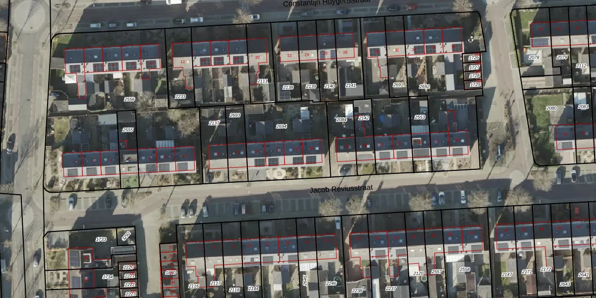 Het perceel waarop Jacob Reviusstraat 23 staat heeft een oppervlakte van 1225 m². Dit is een zeer groot perceel. De perceeloppervlakte wordt geregistreerd door het Kadaster. Gedetailleerde informatie over de maten van dit perceel kunt u vinden in het rapport Kadastrale kaart met maatvoering van Jacob Reviusstraat 23.