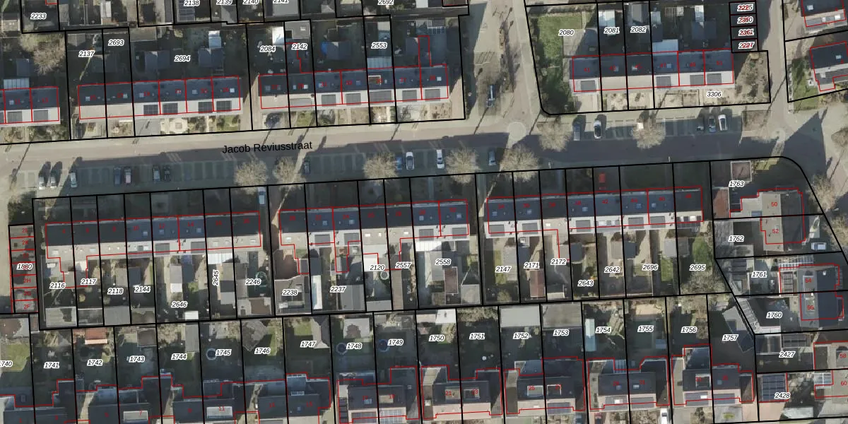 Het perceel waarop Jacob Reviusstraat 30 staat heeft een oppervlakte van 476 m². Dit is een groot perceel. De perceeloppervlakte wordt geregistreerd door het Kadaster. Gedetailleerde informatie over de maten van dit perceel kunt u vinden in het rapport Kadastrale kaart met maatvoering van Jacob Reviusstraat 30.