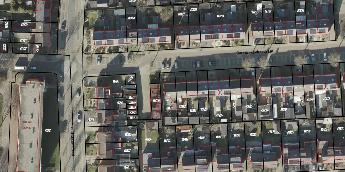 Het perceel waarop Jacob Reviusstraat 4 staat heeft een oppervlakte van 279 m². Dit is een middelgroot perceel. De perceeloppervlakte wordt geregistreerd door het Kadaster. Gedetailleerde informatie over de maten van dit perceel kunt u vinden in het rapport Kadastrale kaart met maatvoering van Jacob Reviusstraat 4.