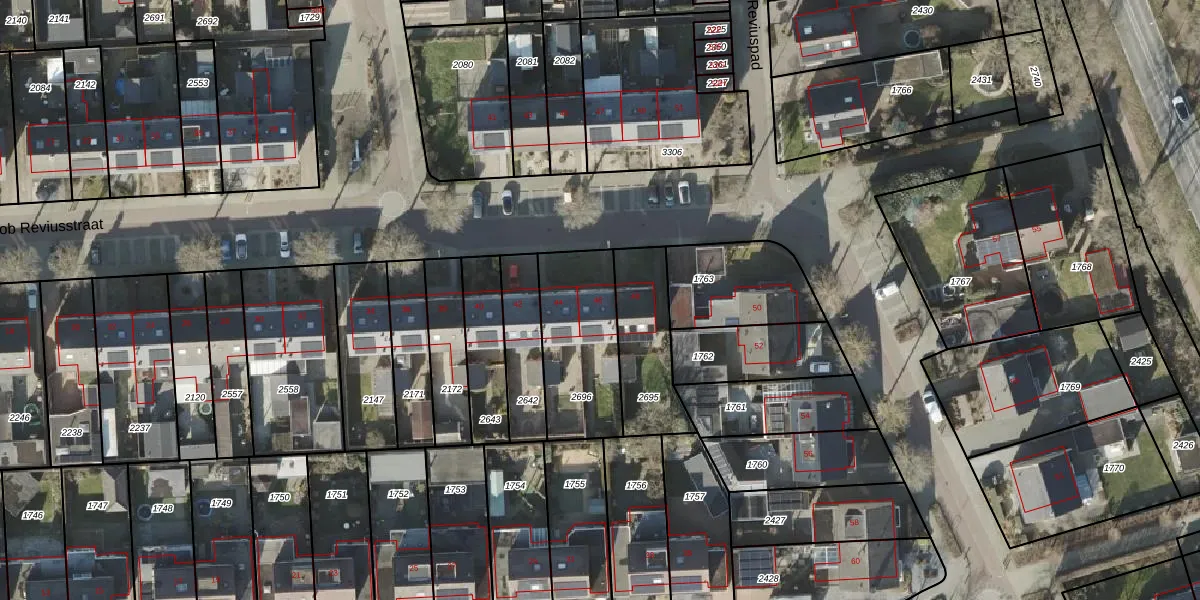 Het perceel waarop Jacob Reviusstraat 46 staat heeft een oppervlakte van 408 m². Dit is een groot perceel. De perceeloppervlakte wordt geregistreerd door het Kadaster. Gedetailleerde informatie over de maten van dit perceel kunt u vinden in het rapport Kadastrale kaart met maatvoering van Jacob Reviusstraat 46.