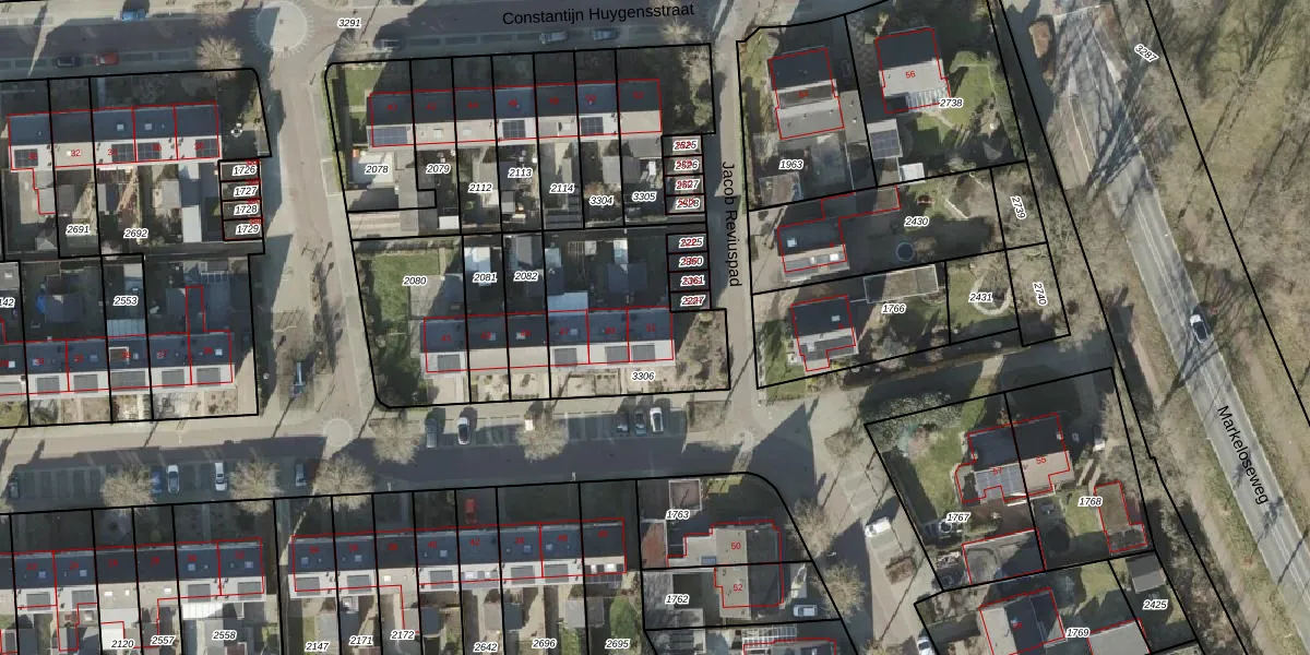Het perceel waarop Jacob Reviusstraat 51 staat heeft een oppervlakte van 598 m². Dit is een groot perceel. De perceeloppervlakte wordt geregistreerd door het Kadaster. Gedetailleerde informatie over de maten van dit perceel kunt u vinden in het rapport Kadastrale kaart met maatvoering van Jacob Reviusstraat 51.