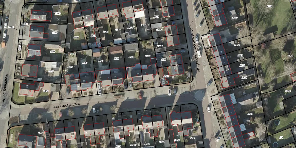 Het perceel waarop Jan Luikenstraat 13 staat heeft een oppervlakte van 358 m². Dit is een groot perceel. De perceeloppervlakte wordt geregistreerd door het Kadaster. Gedetailleerde informatie over de maten van dit perceel kunt u vinden in het rapport Kadastrale kaart met maatvoering van Jan Luikenstraat 13.