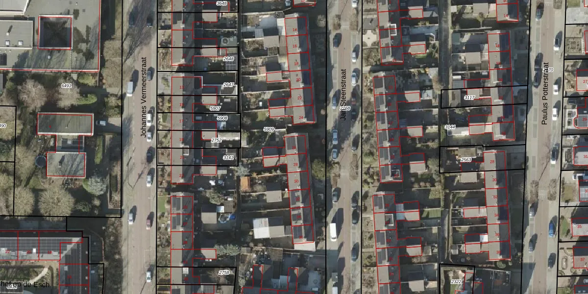 Het perceel waarop Jan Steenstraat 26 staat heeft een oppervlakte van 6427 m². Dit is een zeer groot perceel. De perceeloppervlakte wordt geregistreerd door het Kadaster. Gedetailleerde informatie over de maten van dit perceel kunt u vinden in het rapport Kadastrale kaart met maatvoering van Jan Steenstraat 26.