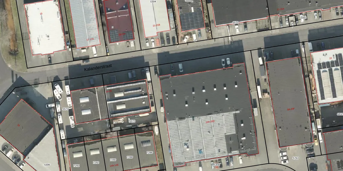 Het perceel waarop Kalanderstraat 20-A staat heeft een oppervlakte van 4016 m². Dit is een zeer groot perceel. De perceeloppervlakte wordt geregistreerd door het Kadaster. Gedetailleerde informatie over de maten van dit perceel kunt u vinden in het rapport Kadastrale kaart met maatvoering van Kalanderstraat 20-A.