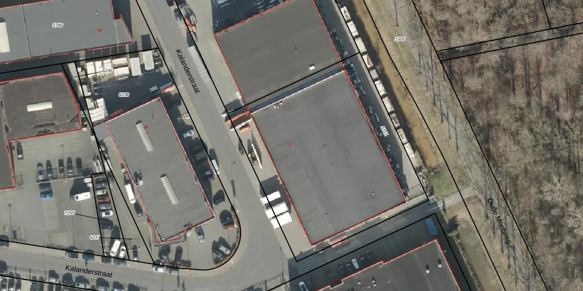 Het perceel waarop Kalanderstraat 47 staat heeft een oppervlakte van 2801 m². Dit is een zeer groot perceel. De perceeloppervlakte wordt geregistreerd door het Kadaster. Gedetailleerde informatie over de maten van dit perceel kunt u vinden in het rapport Kadastrale kaart met maatvoering van Kalanderstraat 47.