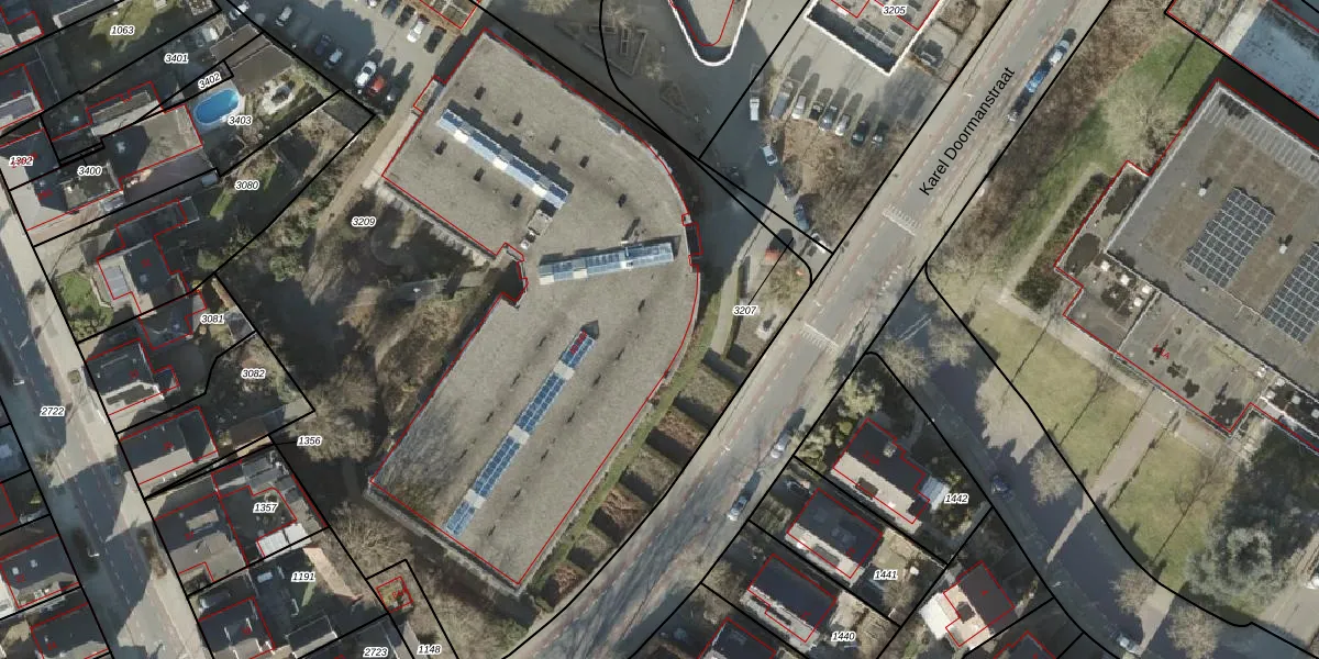 Het perceel waarop Karel Doormanstraat 56 staat heeft een oppervlakte van 6655 m². Dit is een zeer groot perceel. De perceeloppervlakte wordt geregistreerd door het Kadaster. Gedetailleerde informatie over de maten van dit perceel kunt u vinden in het rapport Kadastrale kaart met maatvoering van Karel Doormanstraat 56.