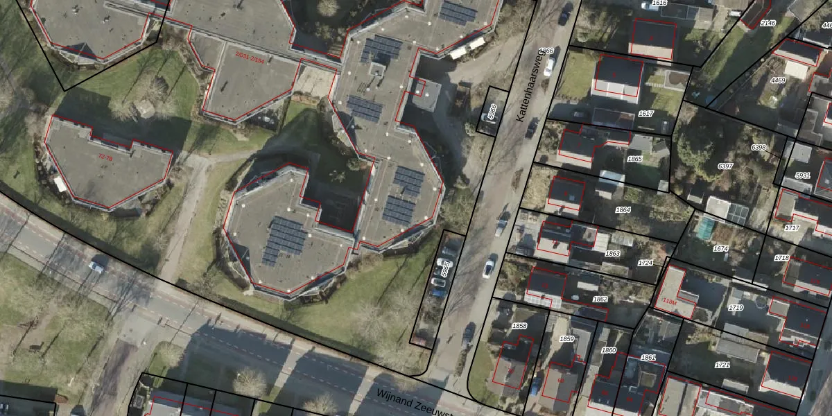 Het perceel waarop Kattenhaarsweg 2-147 staat heeft een oppervlakte van 1,4 ha. Dit is een zeer groot perceel. De perceeloppervlakte wordt geregistreerd door het Kadaster. Gedetailleerde informatie over de maten van dit perceel kunt u vinden in het rapport Kadastrale kaart met maatvoering van Kattenhaarsweg 2-147.