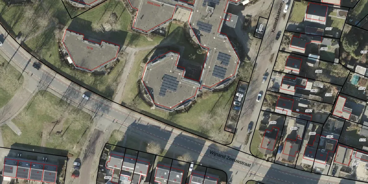 Het perceel waarop Kattenhaarsweg 2-149 staat heeft een oppervlakte van 1,4 ha. Dit is een zeer groot perceel. De perceeloppervlakte wordt geregistreerd door het Kadaster. Gedetailleerde informatie over de maten van dit perceel kunt u vinden in het rapport Kadastrale kaart met maatvoering van Kattenhaarsweg 2-149.